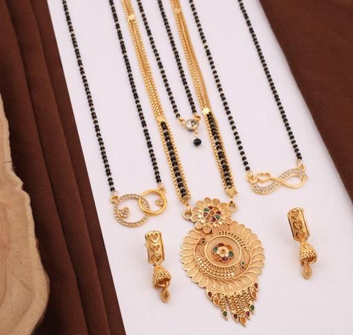 Name: Pack of 4 Gold Plated 30 and 18 Inch with 1Pair of Earring for Women Brass Mangalsutra