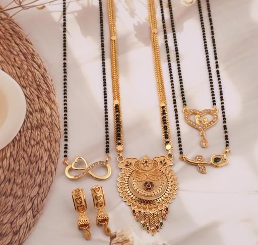 Name: Pack of 4 Gold Plated 30 and 18 Inch with 1Pair of Earring for Women Brass Mangalsutra