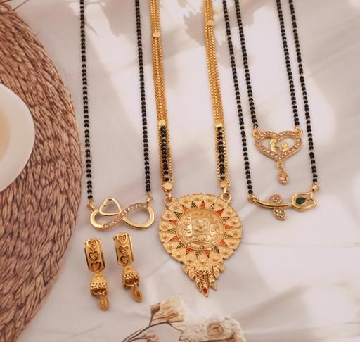 Name: Pack of 4 Gold Plated 30 and 18 Inch with 1Pair of Earring for Women Brass Mangalsutra
