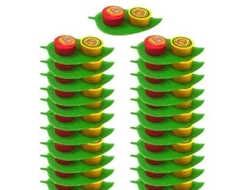 Name: Leaf Shape Thamboolam Set With Pasupu Kumkum- Fancy Leaf Set Combo With Haldi Kumkum (21 Nos), multi-colour