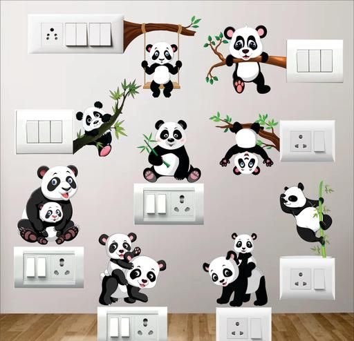 Panda Switch Board Sticker used for wall, Laptop, Door, etc. pack of 9 pcs