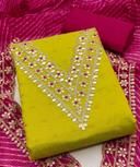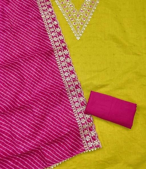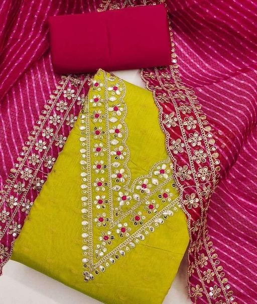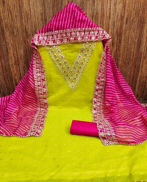 Name: Designer Green Chanderi Cotton Embroidered Suit Set lightweight Chanderi dupatta with fine border work | unstiched women suit