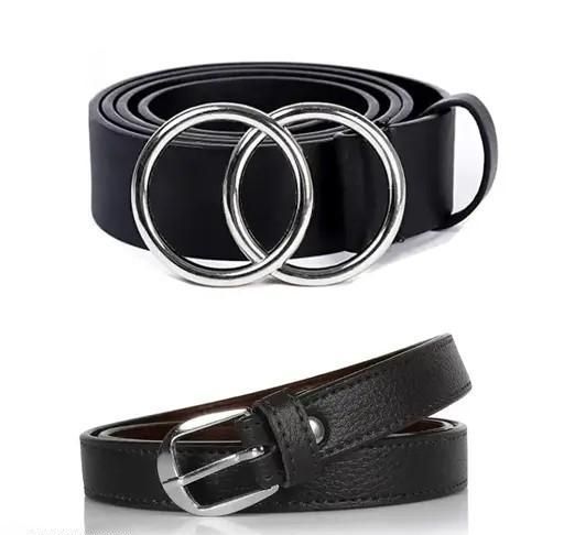 Name: Black Faux Leather Belt For Women's & Girls | Formal & Casual Belt For Ladies(PACK OF 2)