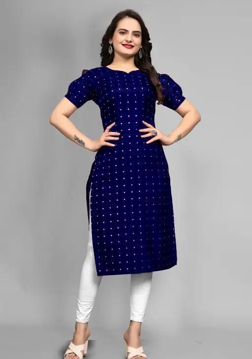 Add a touch of sophistication to your look with our Taffeta Silk kurta, featuring short sleeves and a chic printed pattern. The kurta's luxurious fabric and design make it suitable for special occasions. It comes in sizes S, M, L, XL, XXL, and XXXL, with a bust size ranging from 36 to 46 inches and a length of 42 inches, ensuring a great fit for all. The kurta's sleek silhouette and elegant appeal make it a timeless addition to your wardrobe.