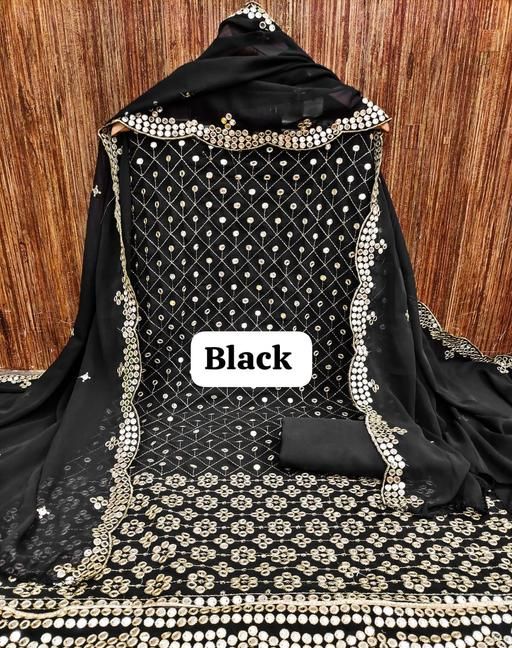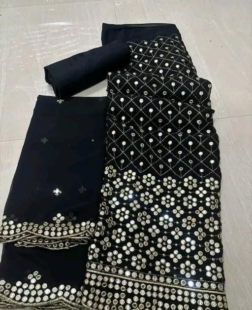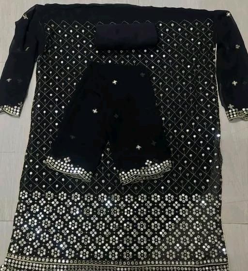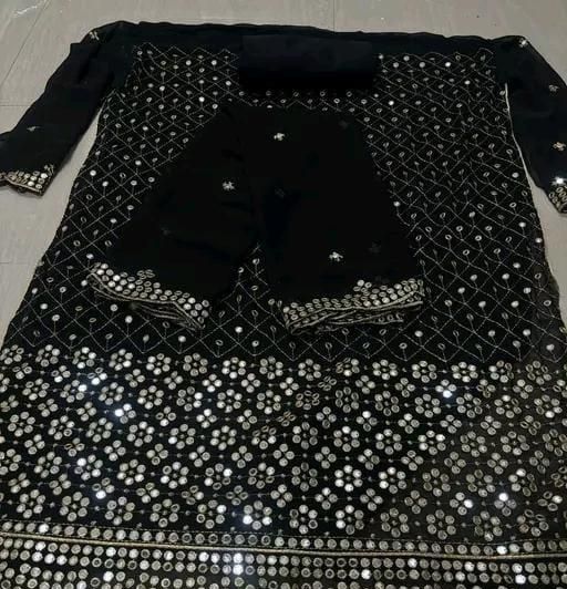 Name: New Mirror Work Famous Georgette Suits Dress Materials pakistani suits fully embroidered suits Aagyeyi Sensational Salwar Suits & Dress Materials Georgette 9mm Heavy sequence Work Wear Suit Like Party Wear Garara suit Black Colour