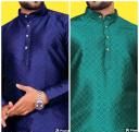 Name: Men's Jacquard Regular Fit Full Sleeve Kurta Kurta For Men, Checked Pattern Kurta for Festive Occasion (Pack Of 2 )