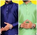 Name: Men's Jacquard Regular Fit Full Sleeve Kurta Kurta For Men, Checked Pattern Kurta for Festive Occasion (Pack Of 2 )