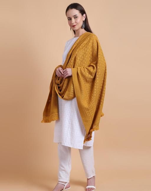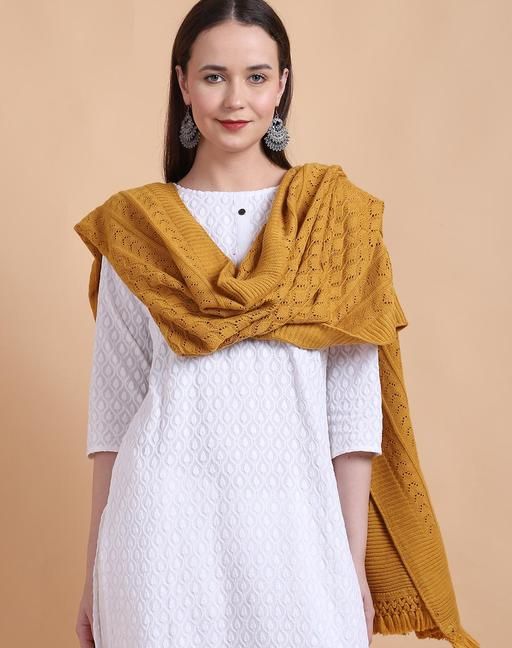Name: Vesture Women's Winter Stole - Plain Self-Design, Luxurious Knitted Fabric, 28x80 Inch with Tassels (Yellow Gold)
