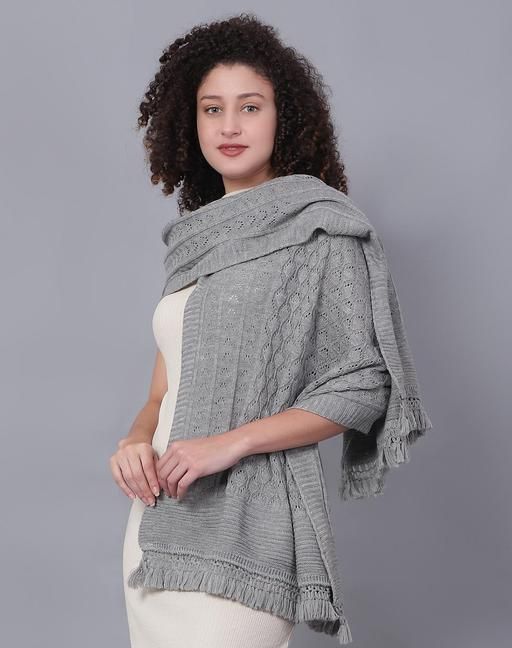 Name: Vesture Women's Winter Stole - Plain Self-Design, Luxurious Knitted Fabric, 28x80 Inch with Tassels (Grey)