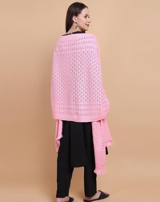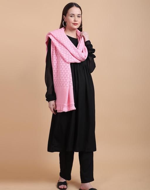 Name: Vesture Women's Winter Stole - Plain Self-Design, Luxurious Knitted Fabric, 28x80 Inch with Tassels (Pink) Fabric: Wool Border: Embellished Print Or Pattern Type: Dyed/ Washed Surface Styling: Brocade Net Quantity (N): 1 Elevate your winter wardrobe with the Vesture Winter Plain Self-Design Knitted Women's Stole. This exquisite accessory, boasting dimensions of 28 inches by 80 inches, is the perfect blend of warmth and elegance. Available in a stunning array of 25+ colors, you can effortlessly find the shade that suits your style. Crafted with meticulous attention to detail, this stole features a subtle self-design knitted pattern, adding a touch of sophistication to its cozy warmth. The stole is adorned with 2-inch tassels at both shorter ends, enhancing its overall elegance. Wrap yourself in the soft embrace of high-quality knitted fabric that feels luxurious against your skin. The stole offers generous dimensions, providing ample coverage and allowing for versatile styling options. Whether you're dressing up for a formal occasion or adding a touch of elegance to your everyday look, this stole is the ideal choice. Experience the perfect blend of fashion and function with the Vesture Winter Plain Self-Design Knitted Women's Stole. Stay snug, stylish, and warm all winter long with this essential accessory that exudes timeless charm. Country of Origin: India