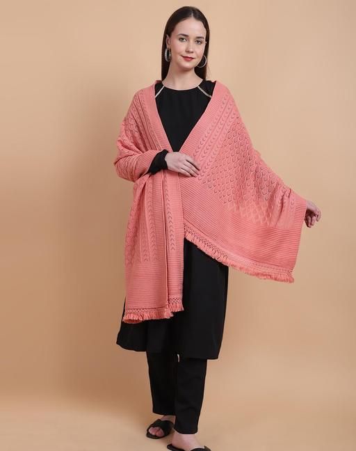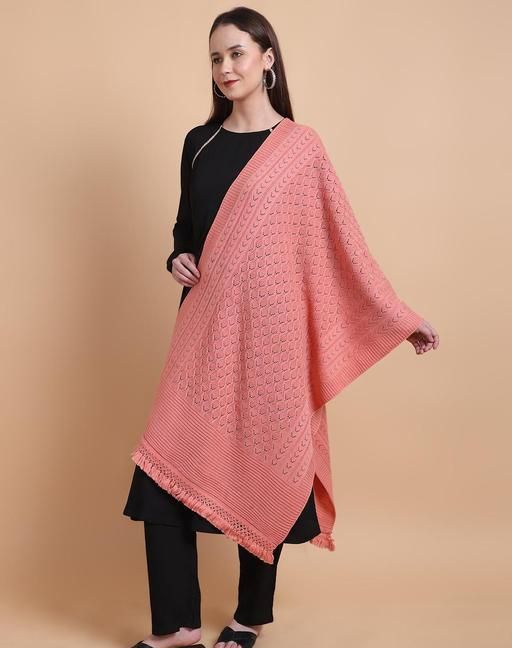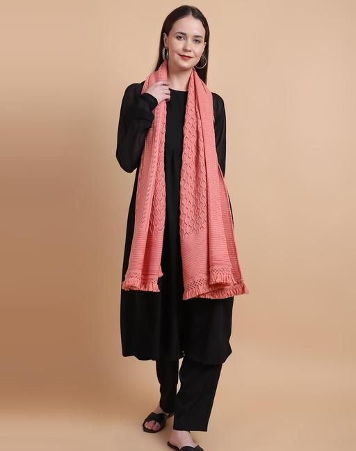 Name: Vesture Women's Winter Stole - Plain Self-Design, Luxurious Knitted Fabric, 28x80 Inch with Tassels (Peach)