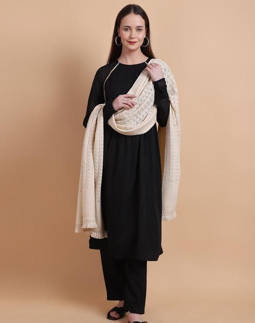 Experience the perfect blend of fashion and function with the Vesture Winter Plain Self-Design Knitted Women's Stole. Stay snug, stylish, and warm all winter long with this essential accessory that exudes timeless charm.