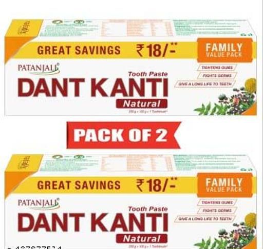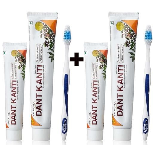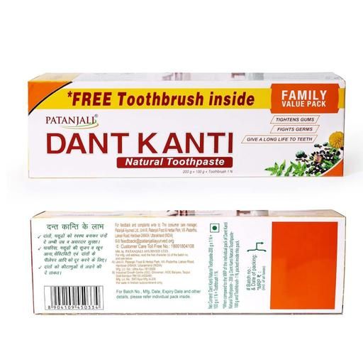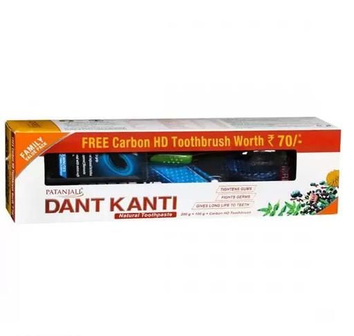 Patanjali Dant Kanti Natural Toothpaste (Free Carbon HD Toothbrush) 200 g + 100 g (PACK OF 2)
