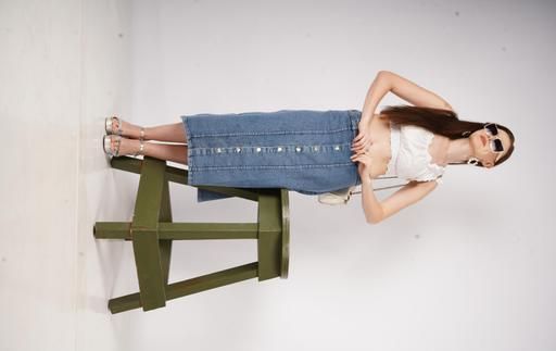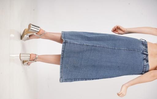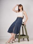 Name: Stretch High Waisted Two Button Up Flared Dobby Denim Skirt For Women & Girls