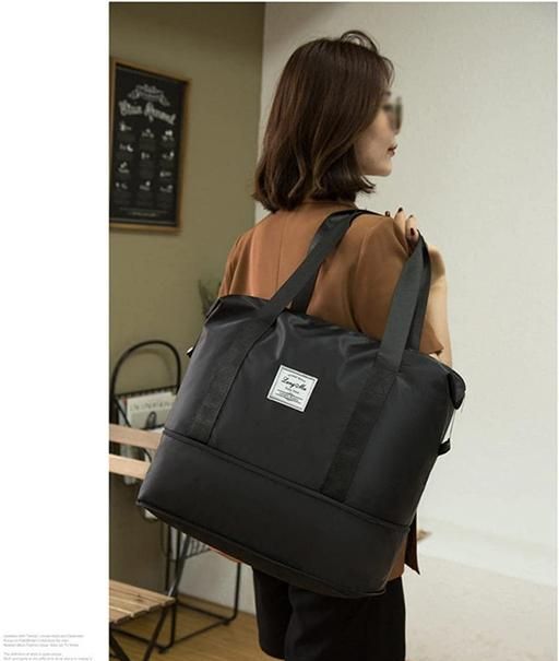 Large capacity folding travel bag made with lightweight waterproof and tear resistant Polyester fabric, solid, durable and strong enough to carry. It is enough for short trips and can easily accommodate 3-5 days of travel clothes.