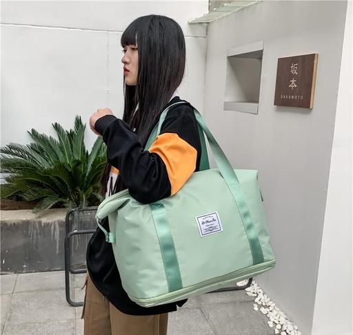 Large capacity folding travel bag made with lightweight waterproof and tear resistant Polyester fabric, solid, durable and strong enough to carry. It is enough for short trips and can easily accommodate 3-5 days of travel clothes.