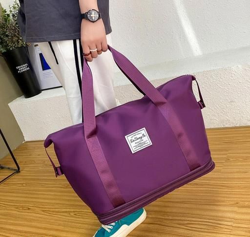 Large capacity folding travel bag made with lightweight waterproof and tear resistant Polyester fabric, solid, durable and strong enough to carry. It is enough for short trips and can easily accommodate 3-5 days of travel clothes.