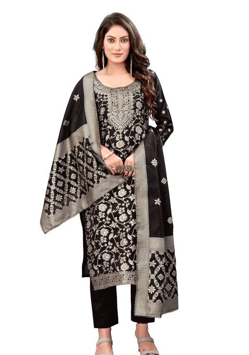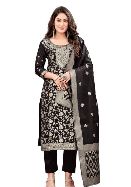 Unstitched silk suit banarasi dress material