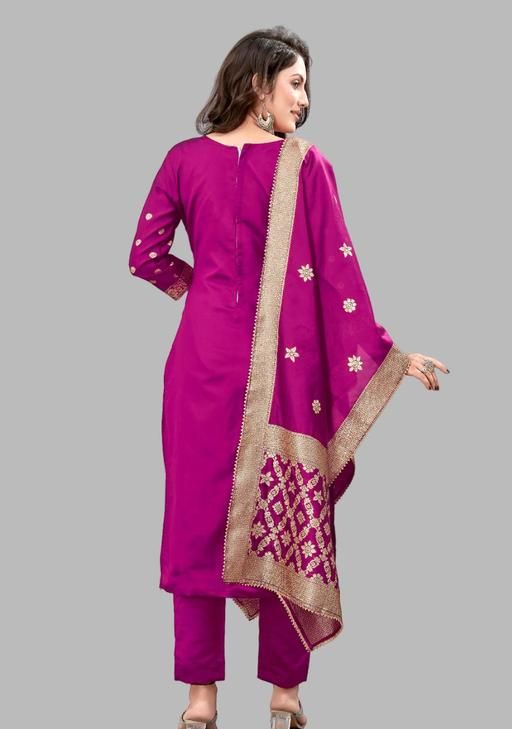This cloth is made from art silk fabric. introducing our beautiful collection of Banarasi Dress Material.get your body this beautiful collection of Indian Traditional Dress Material. Art Silk Salwar Kameez is also known as represented as Festive Dress Material or Women's Ethnic Fashion Dress Material.define your product in daily or occasion lifestyle in your Festive Dress Material.Banarasi Weaving Dress It can also be machine and hand washed for soft and cloth The color of the cloth has no side effect in over Designer Dress Material.This Jacquard Silk suit Dress can be Making in different sizes This Art Silk Unstitched Dress Material is perfect for all functions. The Women's Ethnic Fashion Dress Material Will Keep You Feeling Cool And Refreshed This Banarasi Kurta Set Easy To For Available In A Range Of Colors And Prints Banarasi Silk Fabric Perfect For All Women And Girls Overall suit dress material is a choice for creating and eye-catching garments suitable for a wide range of special occasions It's known for its beauty and texture, making it a favorite among those who appreciate high-quality fabrics.