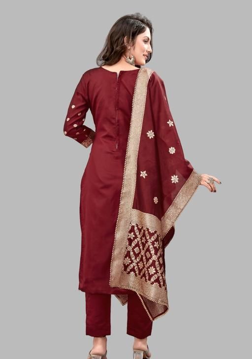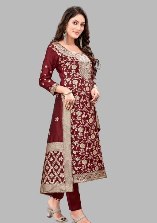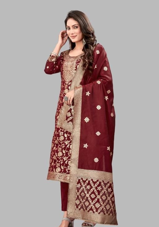 Woven Design Banarasi Silk Suits Dress Materials For Women Girls (Top,Bottom,Duppto) In this product suit fabric 2.20 meters bottom fabric 2.00 meters dupatta fabric 2.00 to 2.25 meters are provided This cloth is made from art silk fabric. introducing our beautiful collection of Banarasi Dress Material.get your body this beautiful collection of Indian Traditional Dress Material. Art Silk Salwar Kameez is also known as represented as Festive Dress Material or Women's Ethnic Fashion Dress Material.define your product in daily or occasion lifestyle in your Festive Dress Material.Banarasi Weaving Dress It can also be machine and hand washed for soft and cloth The color of the cloth has no side effect in over Designer Dress Material.This Jacquard Silk suit Dress can be Making in different sizes This Art Silk Unstitched Dress Material is perfect for all functions. The Women's Ethnic Fashion Dress Material Will Keep You Feeling Cool And Refreshed This Banarasi Kurta Set Easy To For Available In A Range Of Colors And Prints Banarasi Silk Fabric Perfect For All Women And Girls Overall suit dress material is a choice for creating and eye-catching garments suitable for a wide range of special occasions It's known for its beauty and texture, making it a favorite among those who appreciate high-quality fabrics.
