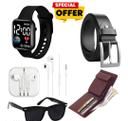 Upgrade your style with this Men’s Trendy Premium Black Belt** and get an amazing **Dhamaka Offer**! Buy the stylish black belt and enjoy **FREE** gifts including a **Digital Watch**, a sleek **Brown Wallet**, high-quality **Wired Earphones**, and fashionable **Sunglasses** – all in one combo!