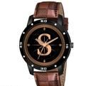 Analog Round Black Dial ALPHABET S Design Stylish Brown Leather Strap Classic Design Fancy Wrist Watch for Men and Boys, Pack of 1 - ALPHA-S-AVO-BLK-BRW-CHL