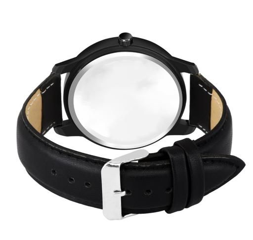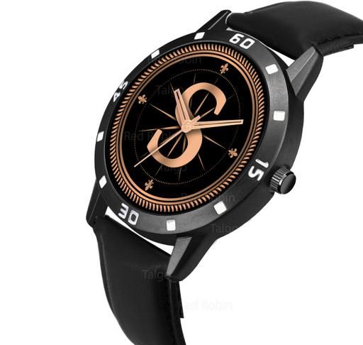 Name: Analog Round Black Dial ALPHABET S Design Stylish Black Leather Strap Classic Design Fancy Wrist Watch for Men and Boys, Pack of 1 - ALPHA-S-AVO-BLK-L