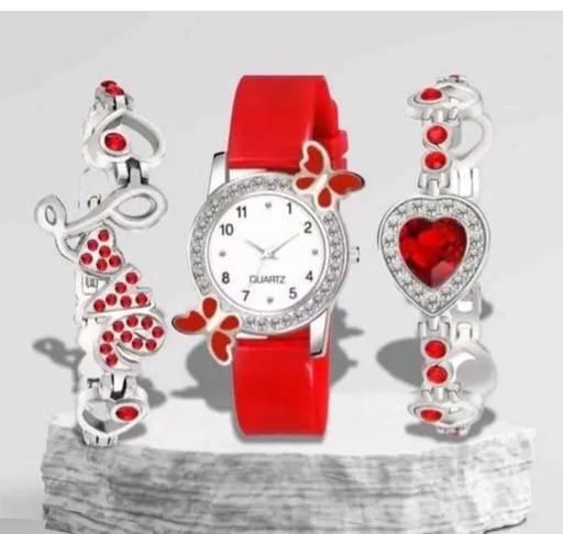 NEW FANCY Bf DESIGN ANALOG WATCH & 2 BRACELET FOR WOMEN & GIRLS