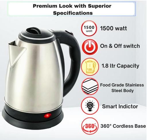 Name: Stainless Steel Kettle , Multipurpose electric kettle 1000 watts,Used to Boil Water Tea,Coffee,Soup | Instant noodles, Electric Kettle with 1 Year warranty| Electric kettle 1.5 litre Electric kettle 1.5 litre multipurpose