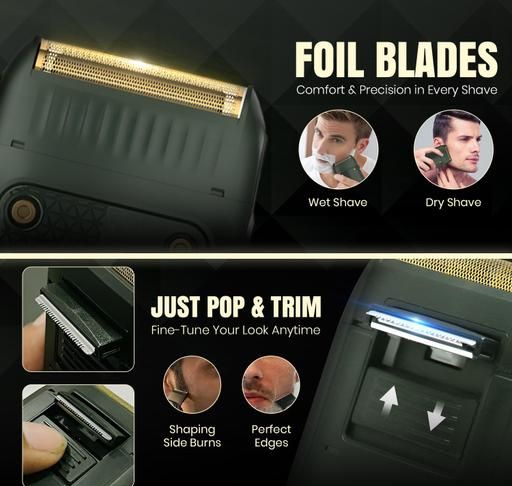 Name: V-353 Professional Men’s Shaver – Dual Flexing Foils, Pop-Up Trimmer for Moustache and Sideburns, USB Type-C Charging, 60 Minutes Runtime, Indicator Light, and Cleaning Brush (Green)