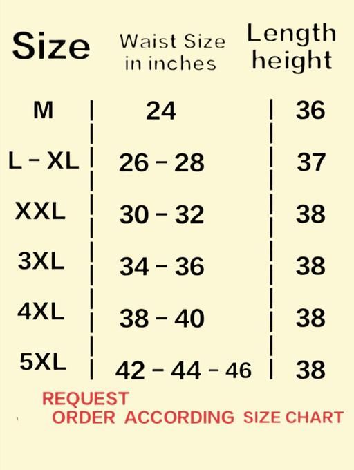S, L, XL (Waist Size: 34 in, Length Size: 38 in, Hip Size: 40 in)