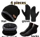 Unisex Black Woolen Premium Quality Beanie Cap with Neck Warmer-Scarf for Men Women plus Premium quality Woolen warm Gloves and warm winter unisex socks (1 Cap, 1 Neck Warmer , 1pair socks and 1 Pair of Gloves)