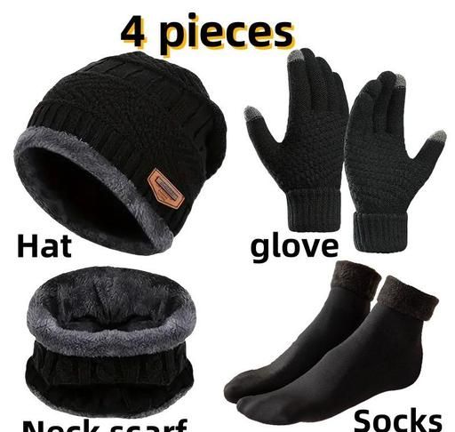 Name: Unisex Black Woolen Premium Quality Beanie Cap with Neck Warmer-Scarf for Men Women plus Premium quality Woolen warm Gloves and warm winter unisex socks (1 Cap, 1 Neck Warmer , 1pair socks and 1 Pair of Gloves)