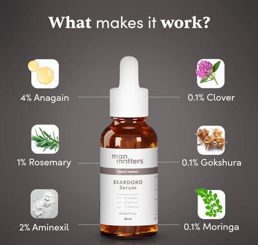 Man Matters BeardGro Oil-In-Serum 30ml | 4% Anagain, 2% Aminexil & 1% Rosemary | Stronger, Fuller & Thicker Beard Growth | Solves Uneven & Patchy Beard | Lightweight and Fast Absorption