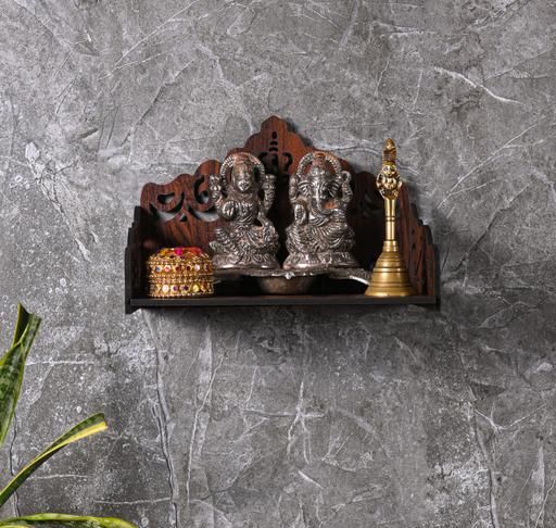 Name: TrendyHouse Engineered Wood Hand crafted Ganesh Ji Pattern Home Temple For Puja Temple for Home and Office l Puja Stand l Wooden Mandir, Puja Shelve, Designer Wooden Shelve (Brown) (Pack Of 1)