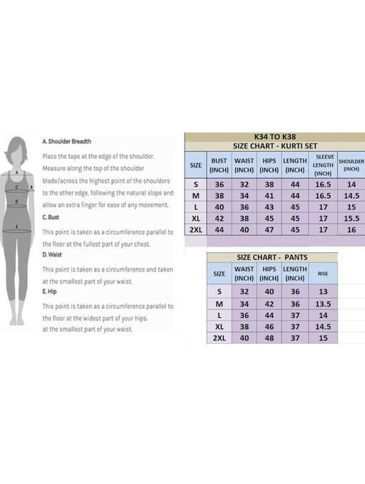 Name: VEDIKA FASHION -RAYON EMBROIDERY WORK KURTI WITH PANT SET Kurta Fabric: Rayon Bottomwear Fabric: Rayon Sleeve Length: Three-Quarter Sleeves Set Type: Kurta With Bottomwear Bottom Type: Palazzos Pattern: Printed Net Quantity (N): Single Sizes: L (Bust Size: 40 in, Shoulder Size: 15 in, Kurta Waist Size: 36 in, Kurta Hip Size: 42 in, Kurta Length Size: 44 in, Bottom Waist Size: 30 in, Bottom Length Size: 38 in) XL (Bust Size: 42 in, Shoulder Size: 15 in, Kurta Waist Size: 38 in, Kurta Hip Size: 44 in, Kurta Length Size: 44 in, Bottom Waist Size: 32 in, Bottom Length Size: 38 in) RAYON EMBROIDERY WORK KURTI WITH PANT SET Country of Origin: India