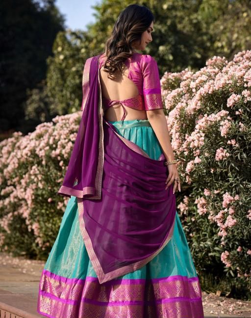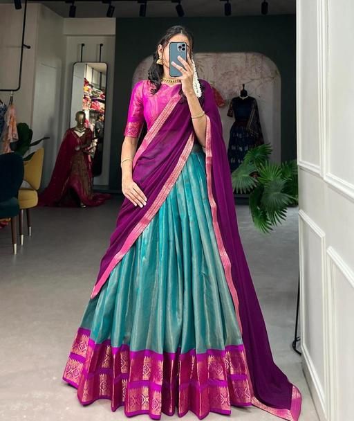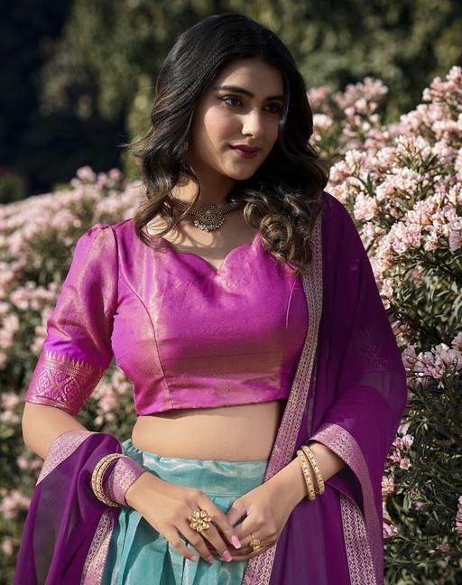 Name: WOMEN'S LEHANGA KANJIVARAM ART SILK PURE ZARI WITH BLOUSE ALONG WITH HEAVY GEROGETTE LACE WORK DUPATTA TRADITIONAL