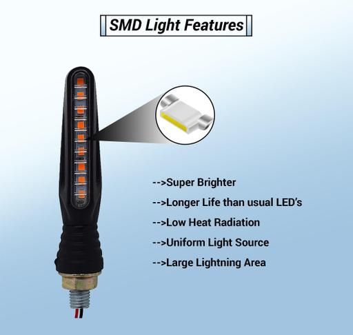 Autoflegde Bike Signal Light has Stylish shape, can catch more people's eyes on the road, makes your motorcycle more fashionable.It is made of ABS plastic body which durable to use.9-LED, Less power consumption, 80% less power consumption than ordinary energy-saving lamps of the same brightness.High toughness bendable rubber to prevent accidental falls effectively.It has igh brightness, low light failure, stable performance and long life.