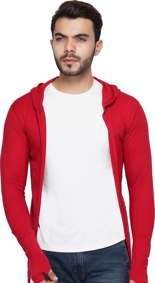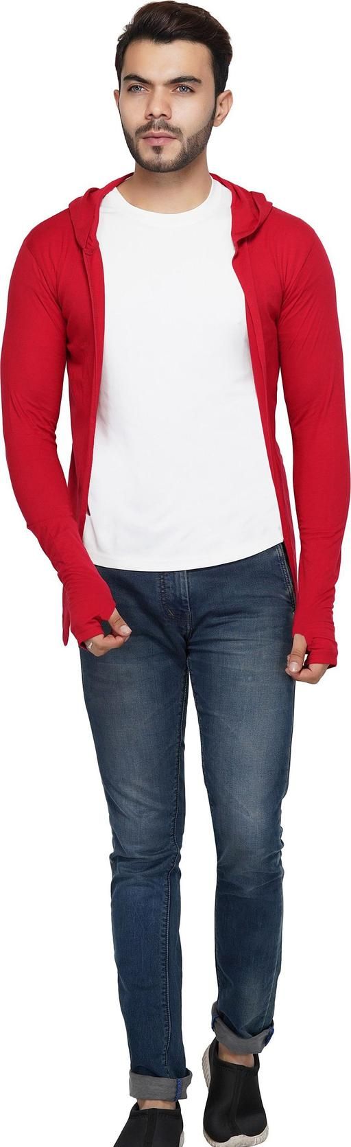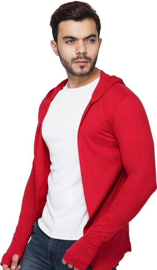Name: Men Red Hooded Thumbhole Open Long Cardigan Overcoat Shrug Men's Classic Solid Cotton Square Neck Collar Full Sleeves Cardigan Overcoat/Shrug