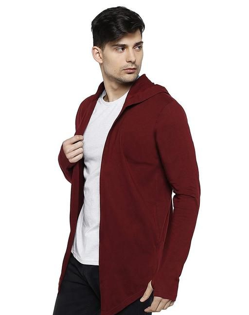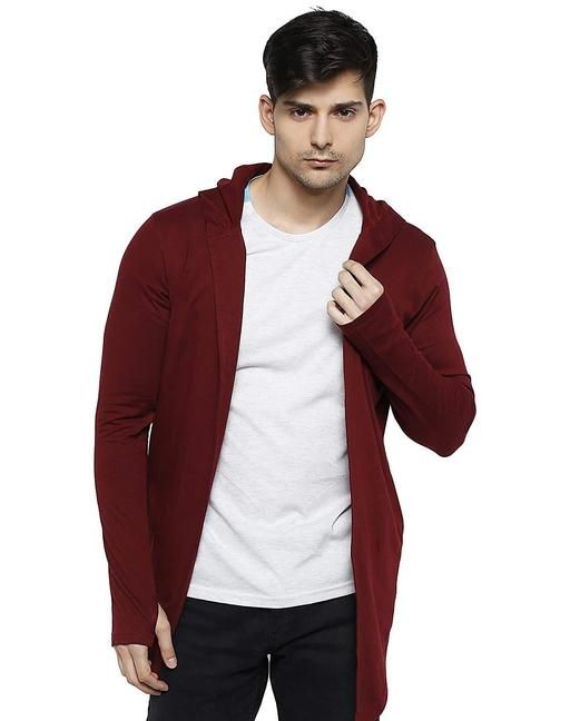 Name: Men Mehroon Hooded Thumbhole Open Long Cardigan Overcoat Shrug Men's Classic Solid Cotton Square Neck Collar Full Sleeves Cardigan Overcoat/Shrug