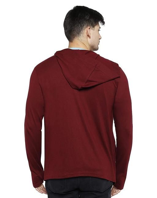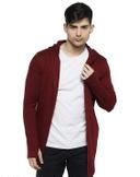 Men Mehroon Hooded Thumbhole Open Long Cardigan Overcoat Shrug Men's Classic Solid Cotton Square Neck Collar Full Sleeves Cardigan Overcoat/Shrug