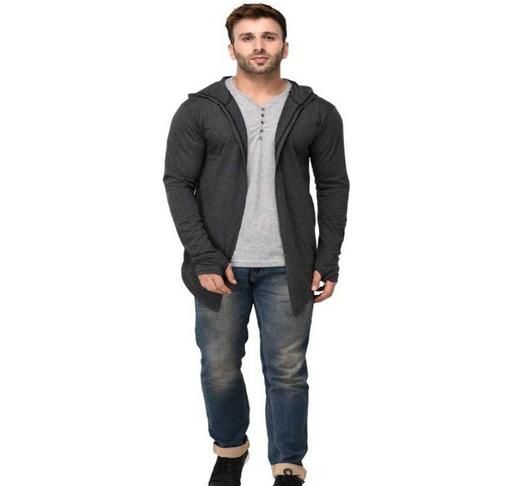 Name: Men Dark Grey Hooded Thumbhole Open Long Cardigan Overcoat Shrug Men's Casual Solid Cotton Square Neck Collar Full Sleeves Cardigan Overcoat/Shrug