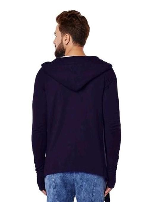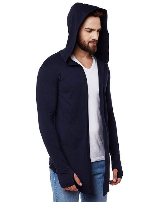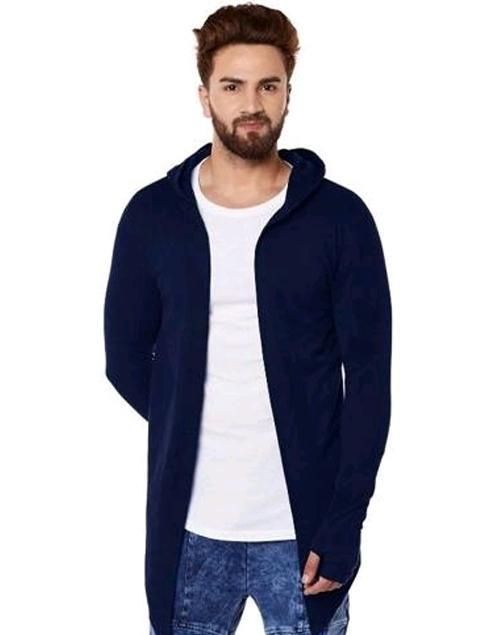 Name: Men Navy Blue Hooded Thumbhole Open Long Cardigan Overcoat Shrug Men's Casual Solid Cotton Square Neck Collar Full Sleeves Cardigan Overcoat/Shrug