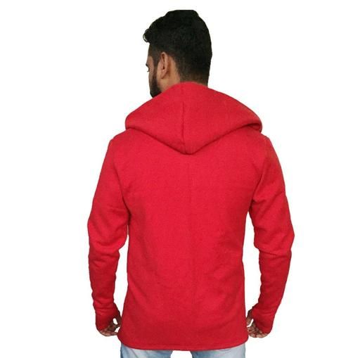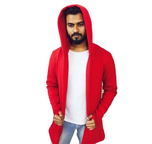 Name: Men Red Hooded Thumbhole Open Long Cardigan Overcoat Shrug Men's Casual Solid Cotton Square Neck Collar Full Sleeves Cardigan Overcoat/Shrug