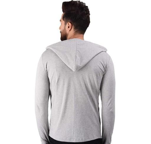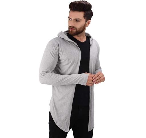 Name: Men Grey Hooded Thumbhole Open Long Cardigan Overcoat Shrug Men's Casual Solid Cotton Square Neck Collar Full Sleeves Cardigan Overcoat/Shrug