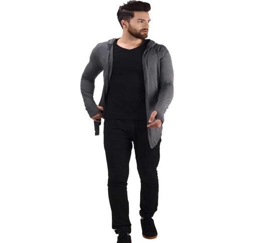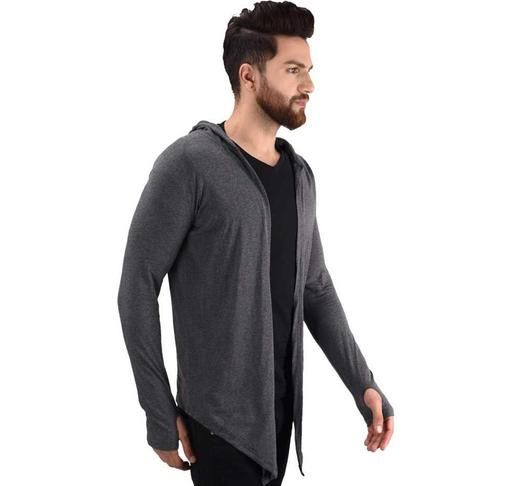 Name: Men Dark Grey Hooded Thumbhole Open Long Shrug Men's Premium Solid Cotton Square Neck Collar Full Sleeves Cardigan Overcoat Shrug