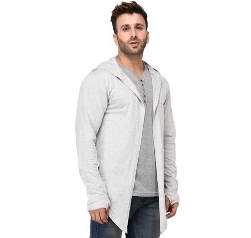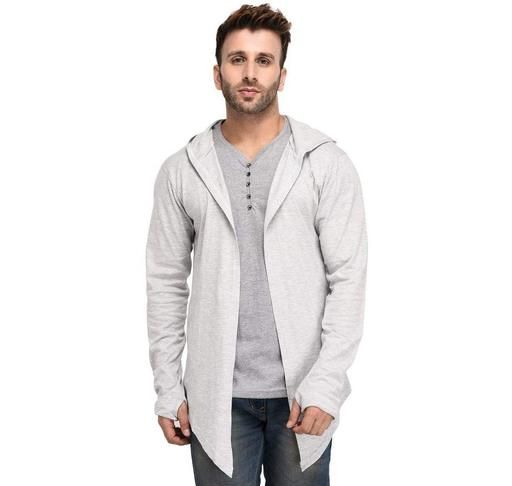 Name: Men Grey Hooded Thumbhole Open Long Shrug Men's Premium Solid Cotton Square Neck Collar Full Sleeves Cardigan Overcoat Shrug