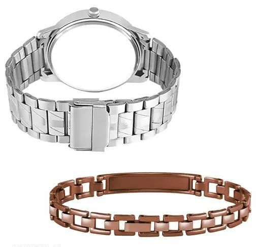 Name: Classy Men Watches With Bracalet Strap Material: Stainless Steel Case: Rectangular Case/Bezel Material: Stainless Steel Clasp Type: Stainless Steel Buckle Date Display: No Dial Design: Solid Dial Shape: Round Display Type: Analog Dual Time: No Gps: No Light: No Mechanism: Quartz Power Source: Battery Powered Scratch Resistant: No Shock Resistance: No Water Resistance: No Add On: Bracelets Net Quantity (N): 1 Sizes: Free Size (Dial Diameter Size: 38 mm) Country of Origin: India