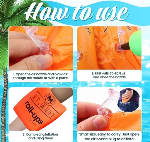 EASY TO INFLATE AND DEFLATE : Our swimming armbands are equipped with two leak-proof valves that make inflation and deflation easy. The inflation valves are easily accessible and require only slight