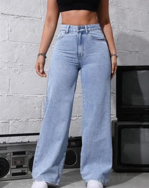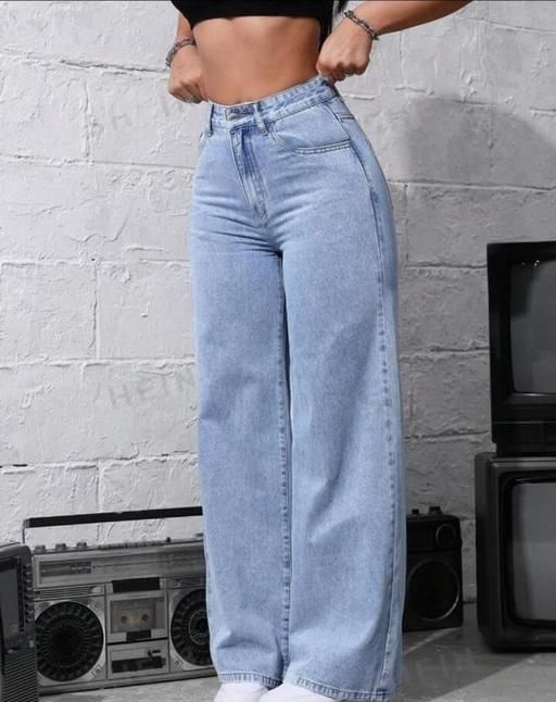 Name: Ice Blue Denim Wide Leg Women's Fancy Baggy Jeans | Trendy & Comfortable Fit